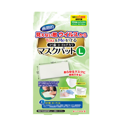 ヨ—ドのチカラ マスクパット(Lサイズ) ヨード ヨウ素 消毒 殺菌 ウイルス 衛生用品 マスクパット 抗菌 ウイルス対策 シート 予防 速攻 持続力 日本製 国内産 国産品 子ども 大人 マスク