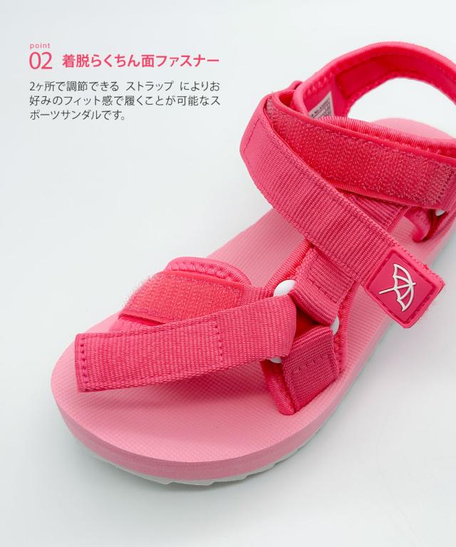 2ヶ所で調節できる ストラップ によりお好みのフィット感で履くことが可能なスポーツサンダルです。