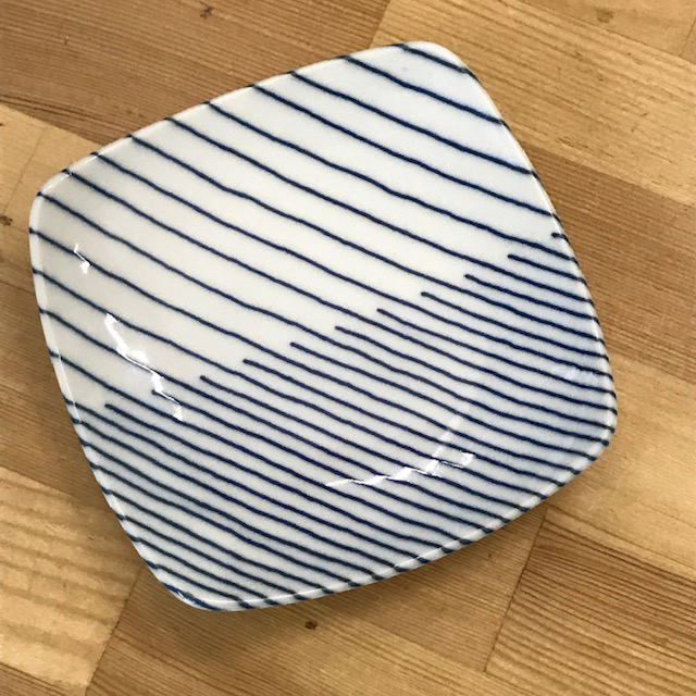 白山陶器 重ね縞 反角小皿 10cm×10cmはくさん 和陶器 洋食器 有田焼 波佐見焼