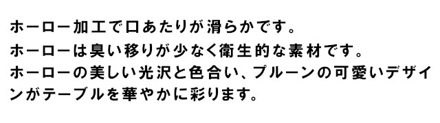 ホーローの美しい光沢と色合い、プルーンの可愛いデザインがテーブルを華やかに彩ります