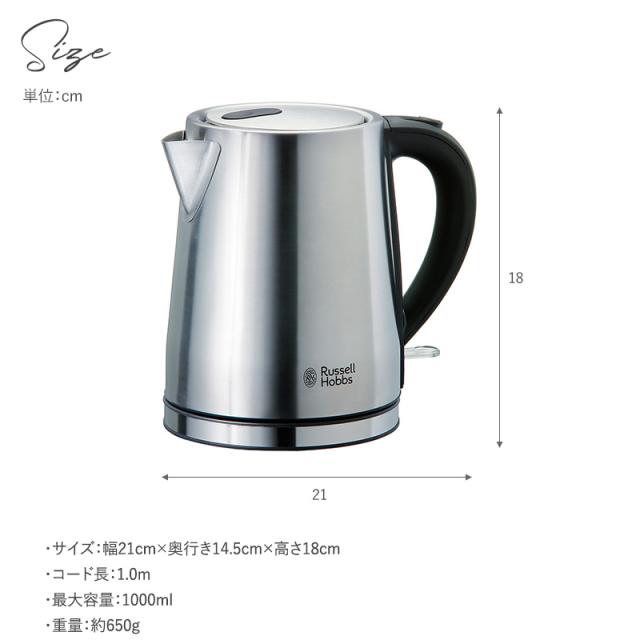 Russell Hobbs ラッセルホブス ベーシックケトル 1.0L 電気ケトル おしゃれ ステンレス 湯沸かしポット 湯沸かしケトル