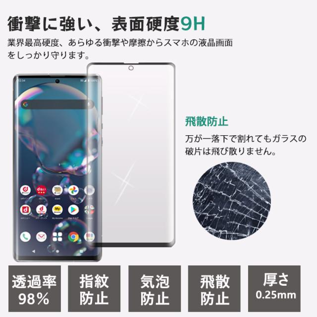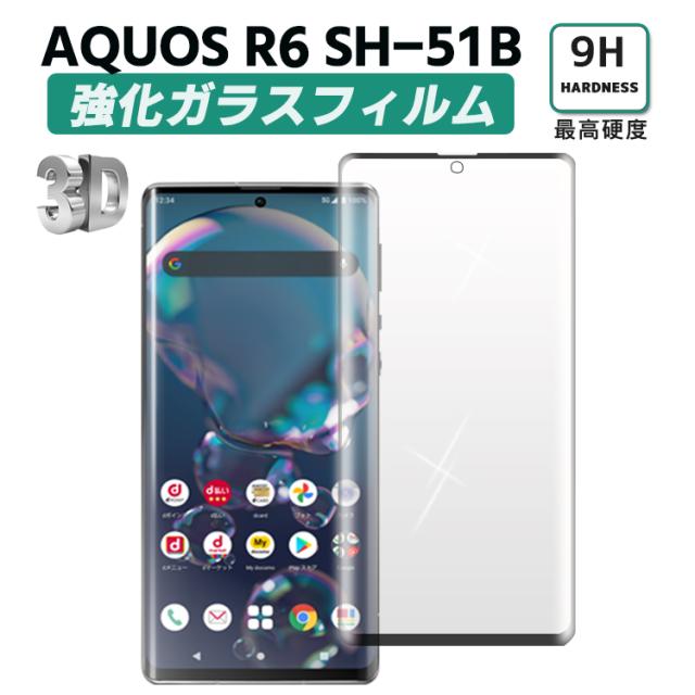 AQUOS R6 SH-51B 強化ガラス 液晶保護フィルム ガラスフィルム 耐指紋 撥油性 表面硬度 3D ラウンドエッジ加工 液晶ガラスフィルム 3D Touch対応 3D全面保護 指紋認証 耐衝撃