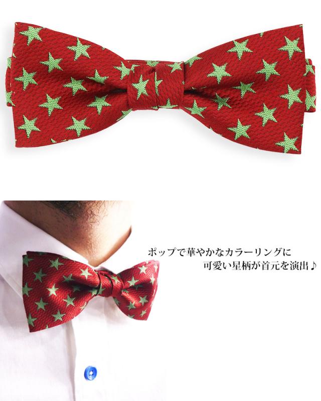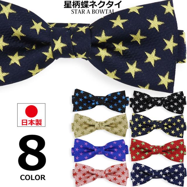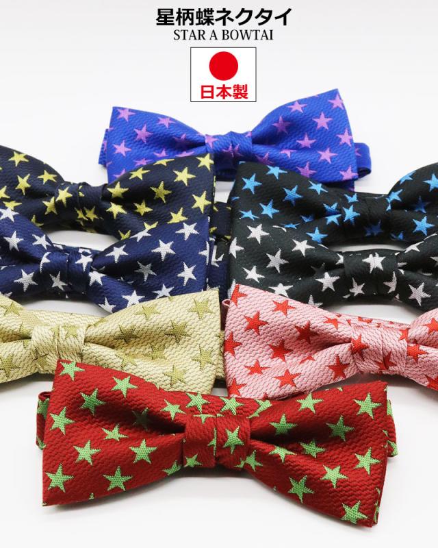 日本製 星柄 蝶ネクタイ メンズ レディース ネクタイ ボウタイ フォーマル 入園式 紳士 男性 赤 黒 青 ピンク 結婚式 ステージ衣装 入社式