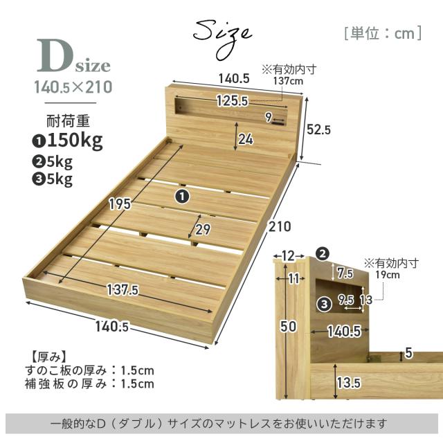 べッド ダブル ベッドフレーム 木製 コンセント 棚付き ダブルベッド ジュガーD インテリア家具 おすすめ おしゃれ 北欧 big_ki プレゼント tm