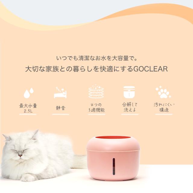 【商品レビューでポイント+5%】 【交換用フィルターセット】 ペット給水器 自動給水器 猫用 犬用 ペット用 大容量 循環式給水器 分解洗浄 清潔 静音性 水 2.5リットル 2.5L ろ過機能 省エネ設計 かわいい おしゃれ FAMILIO GOCLEAR ゴクリア 送料無料 RIORES