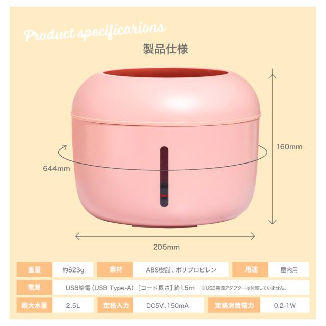 | 電源 | USB給電(USB Type-A)コード長さ 約1.5m ※USB電源アダプターは付属していません。 |