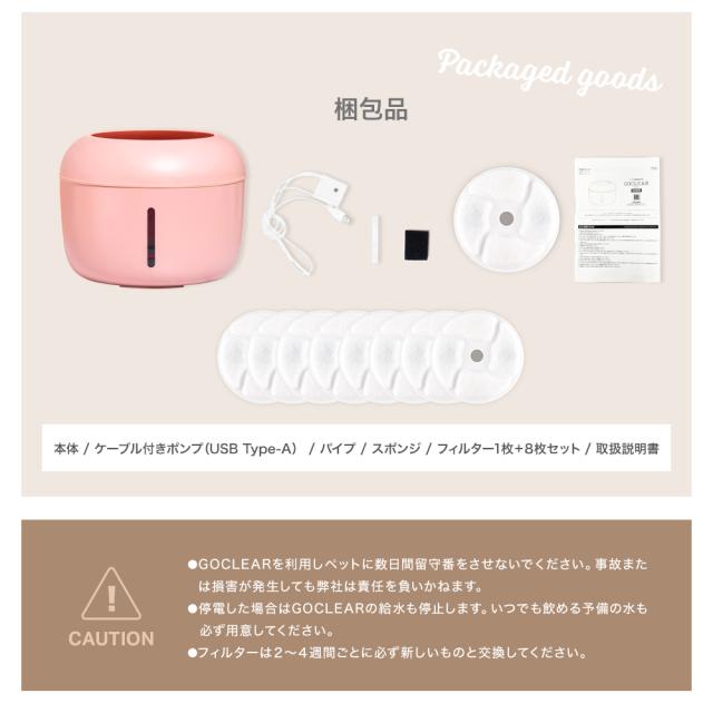 FAMILIO(ファミリオ)雑貨 ペット用品 ペット用自動給水器 交換用フィルター セット 犬 猫 ペット 大容量 分解洗浄 清潔 静音性 水 2.5リットル ろ過機能 省エネ設計 かわいい おしゃれ FAMILIO GOCLEAR ゴクリア