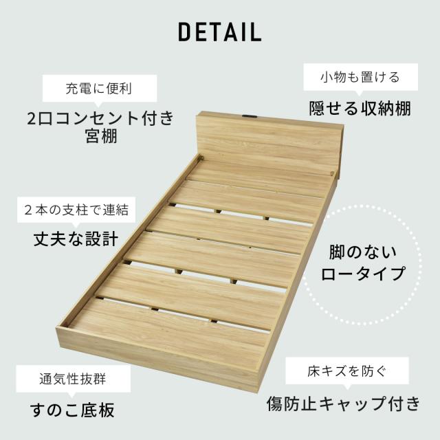 シングルベッド ロータイプ べッド ベッドフレーム 木製 コンセント 棚付き 収納 デルトS インテリア家具 おすすめ おしゃれ 北欧 big_ki プレゼント tm