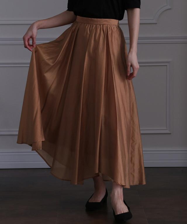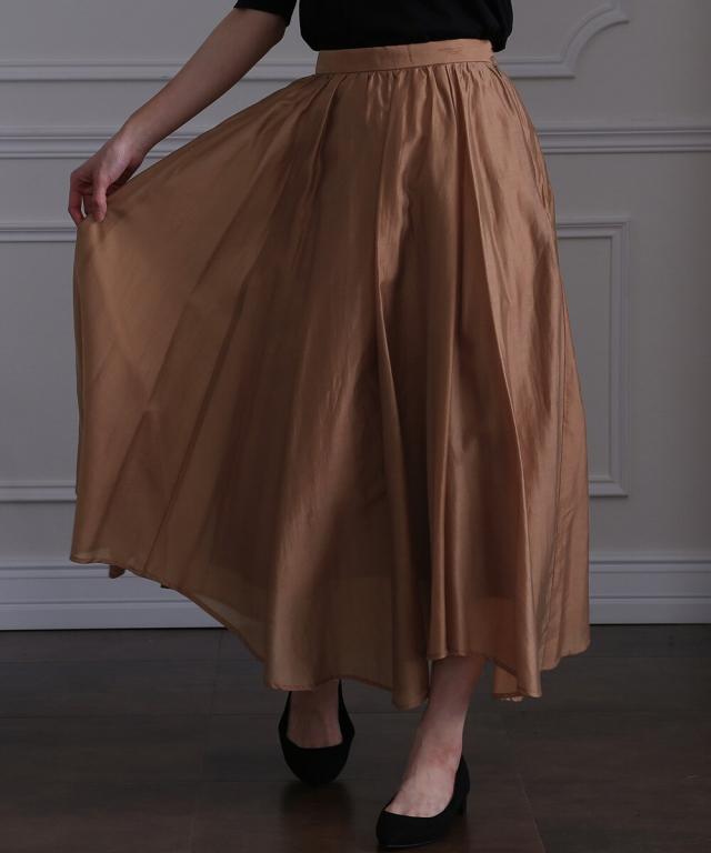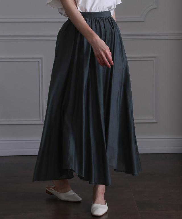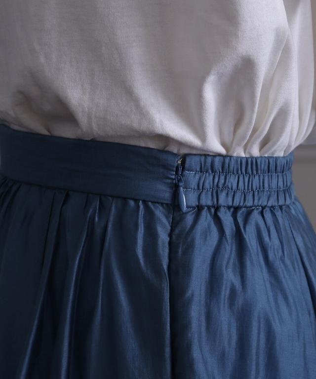 やや光沢あるシアー生地が上品で大人っぽい雰囲気を生み出すアイテム。