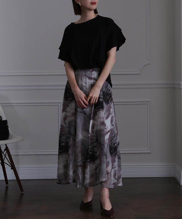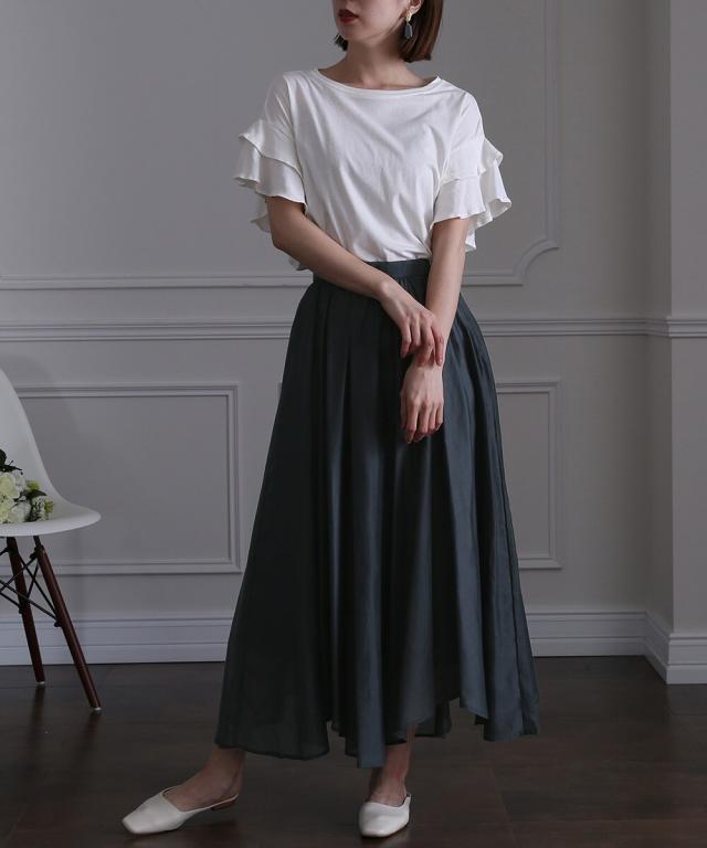 歩くたびにふんわりと広がるエアリーなフレアスカート。
