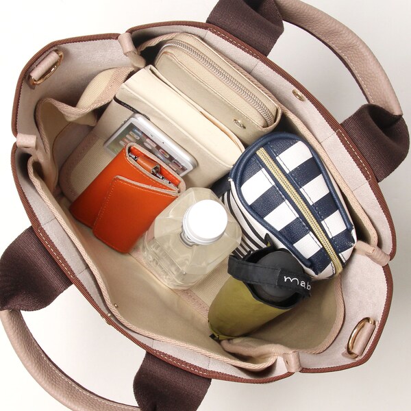 テープハンドルとのカラーコンビが大人っぽい2wayトートバッグ。