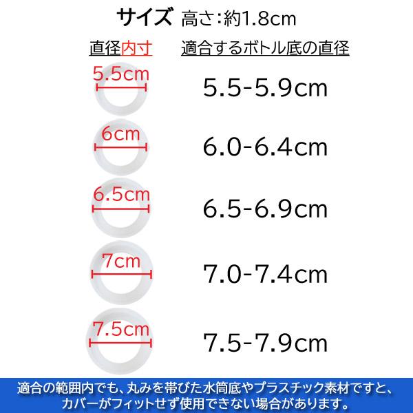 ・水筒などのメーカー公式サイズの直径は、必ずしも底部分の直径とは限りません。実物の底直径を測ってからシリコンカバーのサイズお選び下さい。