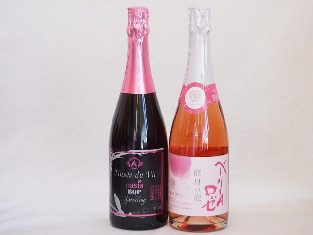 果実味豊かなロゼスパークリングワイン2本セット(ミュゼドゥヴァン ブラッククイーンピンク辛口 酵母の泡ベーリーAロゼ やや辛口) 750ml×1本 720ml×1本