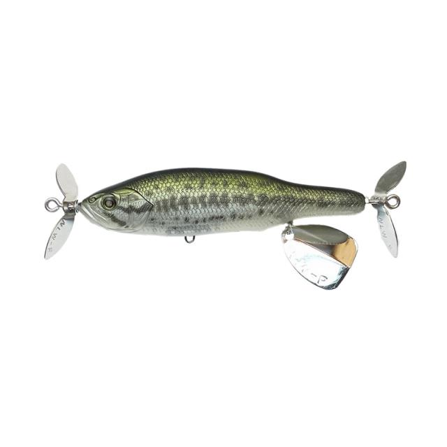 ダブルプロップベイトでありながらロールアクションを発生させながら泳ぎます。(その際に金属音も発生)