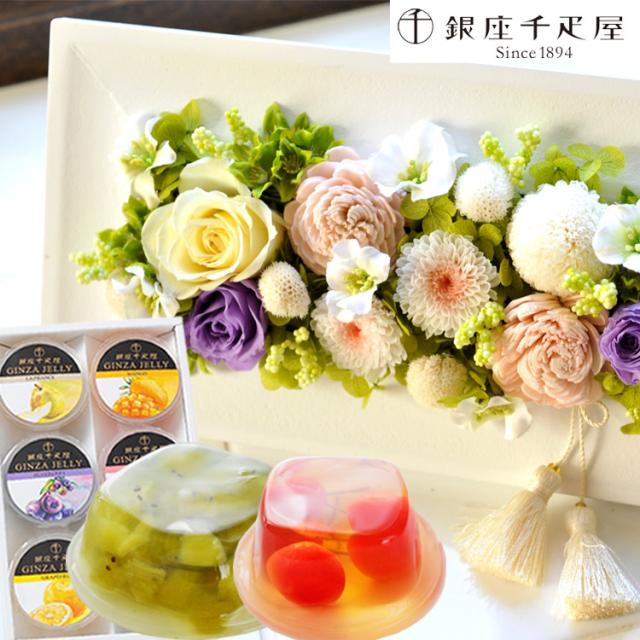 お供えフレームプリザ+【銀座千疋屋】銀座ゼリー6個入りセット 即日発送 あすつく お盆 お供え ご進物 お悔み FKTPO