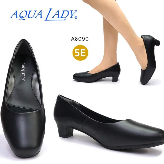 AQUA LADY レディース パンプス A8090 本革 5E 幅広 黒 リクルート フォーマル 冠婚葬祭 アクアレディ AQUA LADY A8090