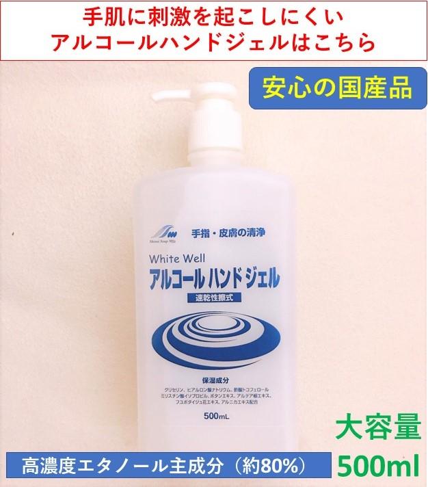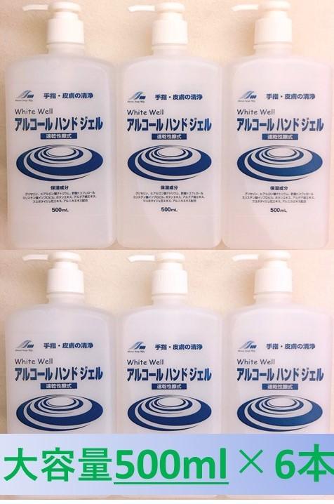 アルコールハンドジェル 500ml 6本 敏感肌用 保湿 サラサラ感触 高濃度エタノール 日本製 除菌ジェル 手指 速乾 敏感肌