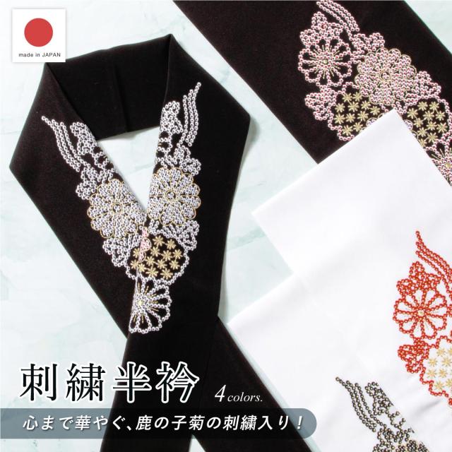 半衿 レディース 振袖 成人式 卒業式 フォーマル 白 黒 赤 刺繍 鹿の子菊 菊 華やか 上品 留袖 礼装 大人 結婚式 訪問着 おしゃれ かわいい ポリエステル 日本製 メール便対応 送料無料