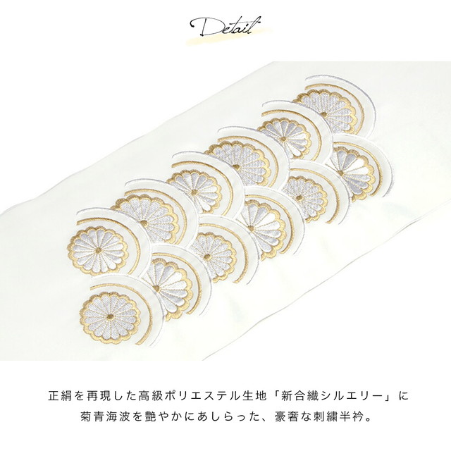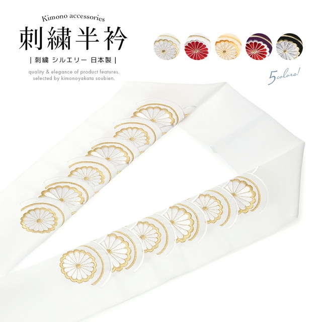 半襟 刺繍 振袖 半衿 成人式 白 黄色系 紫 黒 金色 菊青海波 新合繊 シルエリー 留袖 婚礼 白無垢 はんえり 和装小物 女性 レディース 日本製 送料無料 メール便