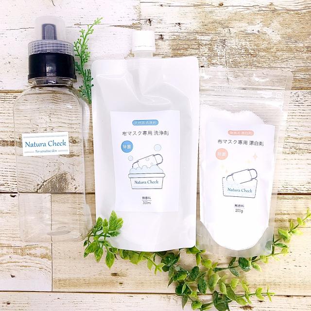 ナチュラチェック 布マスク専用洗浄セット マスク専用洗剤 280ml 3パック マスク専用漂白剤 200g ボトルセット 無香料 除菌 消臭 抗菌 送料無料