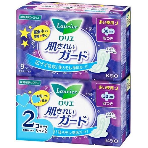 花王 ロリエ 肌きれいガード 夜用 羽つき 9コ入×2 返品種別A