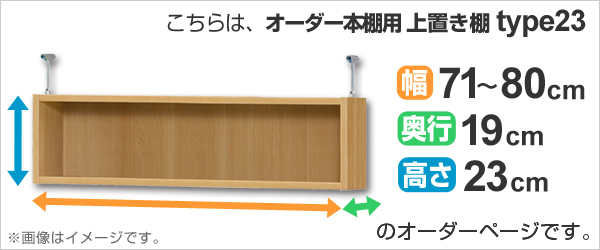 専用 上置き棚 標準棚板 type23 オーダー本棚 奥行19cm 幅71-80cm用 ( オーダーメイド 天井つっぱり 薄型 スリム 本棚 収納棚 セミオーダー )