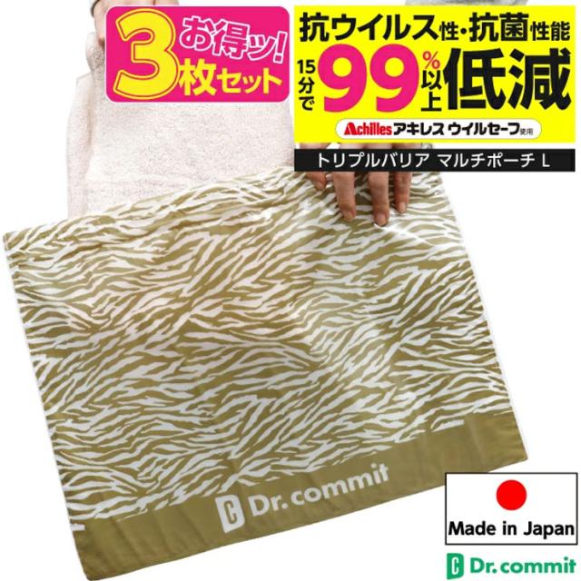 トリプルバリアマルチポーチ Lサイズ 3枚セット TJI-588-3p アキレス バッグ ポーチ 収納 除菌 殺菌 抗菌 マスク ケース 日本製 (04528)