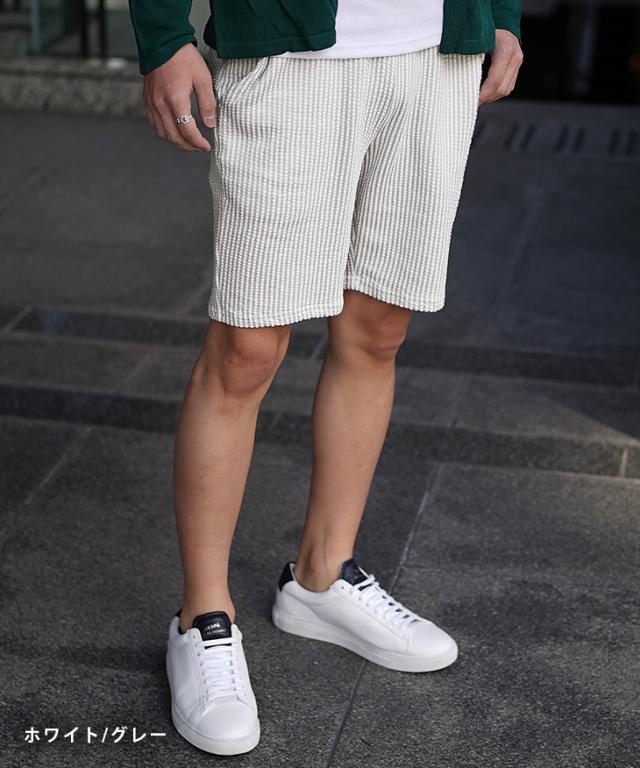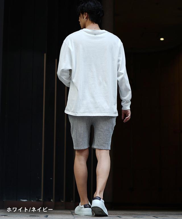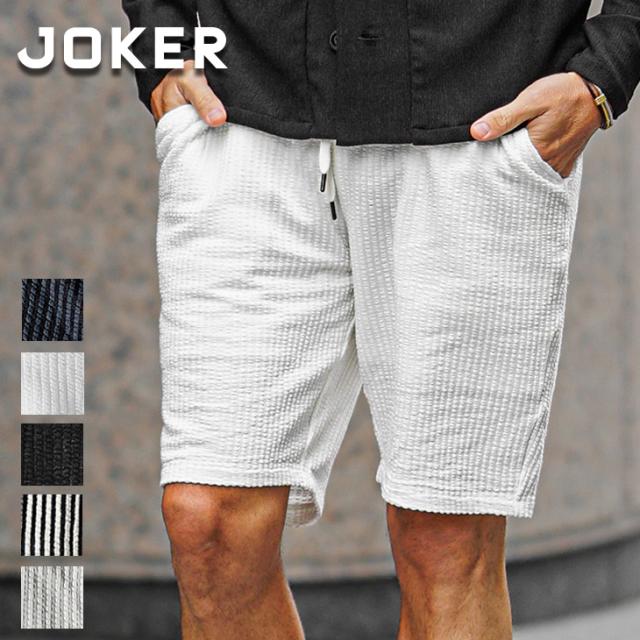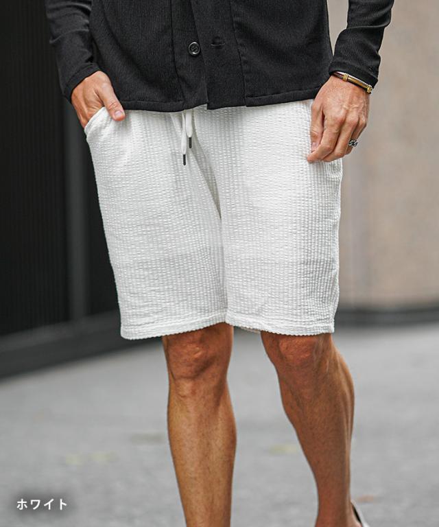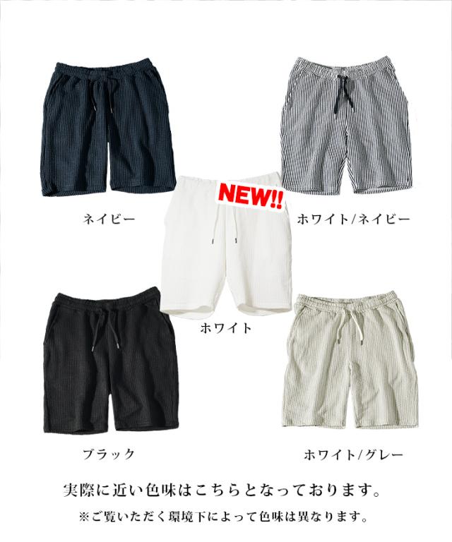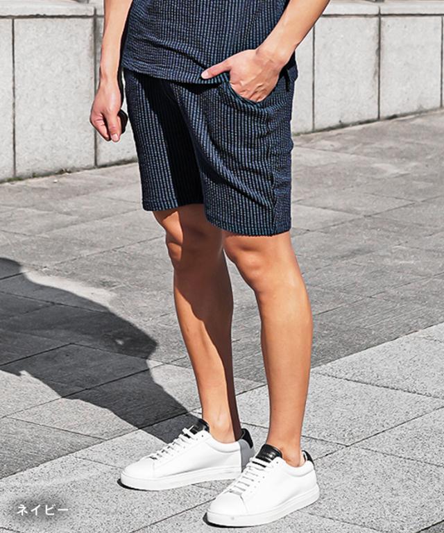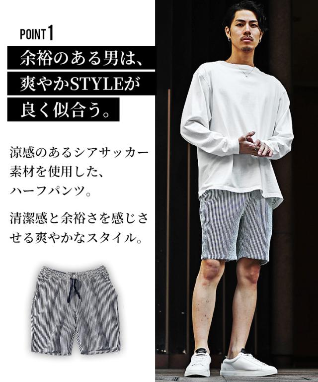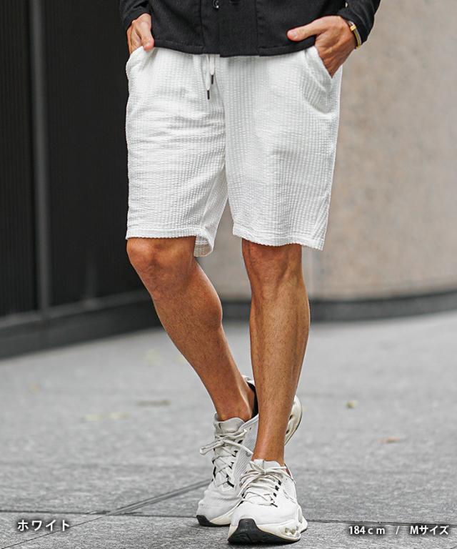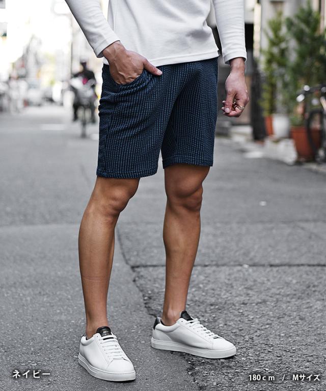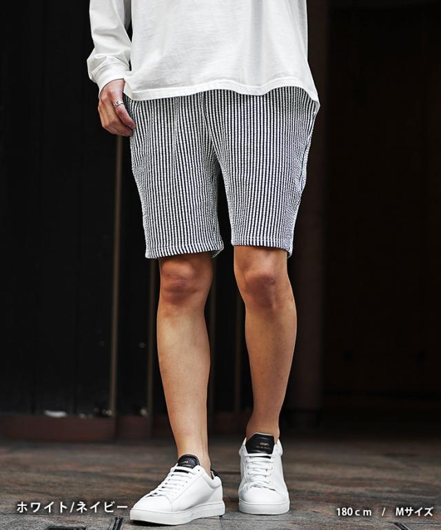 キメずに作る「清 涼 感!!」リラックス ハーフパンツ メンズ 短パン メンズ ショートパンツ メンズ 短め 半ズボン ショーツ 膝上 ひざ上 ストライプ パンツ イージーパンツ ひざ丈 シアサッカー 黒 ネイビー スリム 細身 タイト 春 春服 春物 春夏 メンズファッション joker