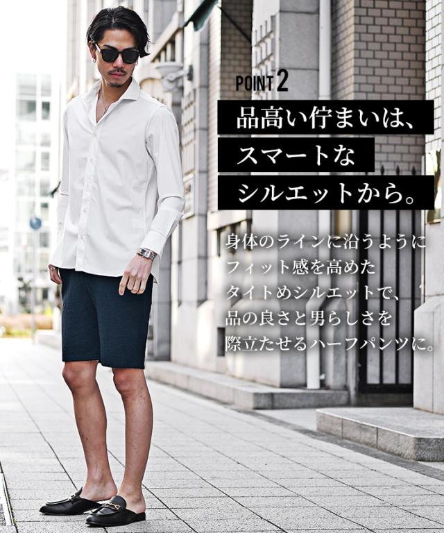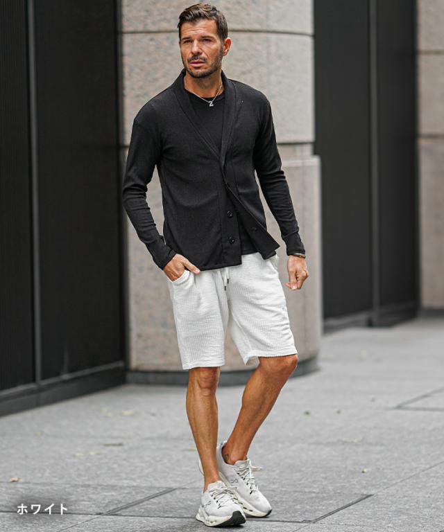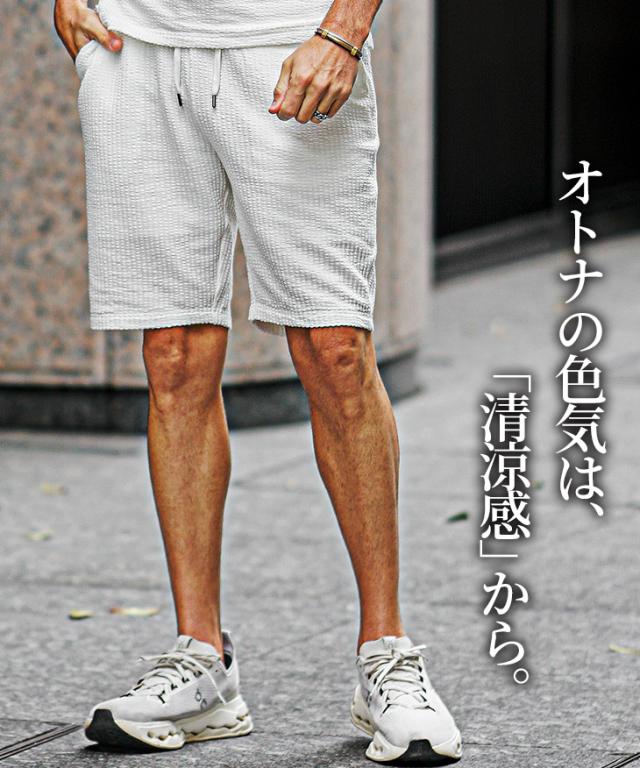 軽快に穿きこなす『シアサッカーハーフパンツ』【シアサッカーハーフパンツ】■Design/デザインシアサッカー素材で軽快に纏うショート丈のハーフパンツ。生地に凹凸をもたせたシアサッカー素材で清涼感を演出し、伸縮素材も配合することで肌なじみが良く、身体のラインに添った美シルエットに。膝上に設定された丈感が爽やかな脚元を演出し、涼しげな装いに昇華させる。リラックス感と爽やかさを併せ持つオトナのハーフパンツが季節を彩る。■Material/素材感綿とポリエステルを使用し、柔らかく軽やかな着用感が特徴。シアサッカー素材のため肌にへばりつかず、汗ばむ時期も爽やかに着こなせるのが嬉しいポイント。
