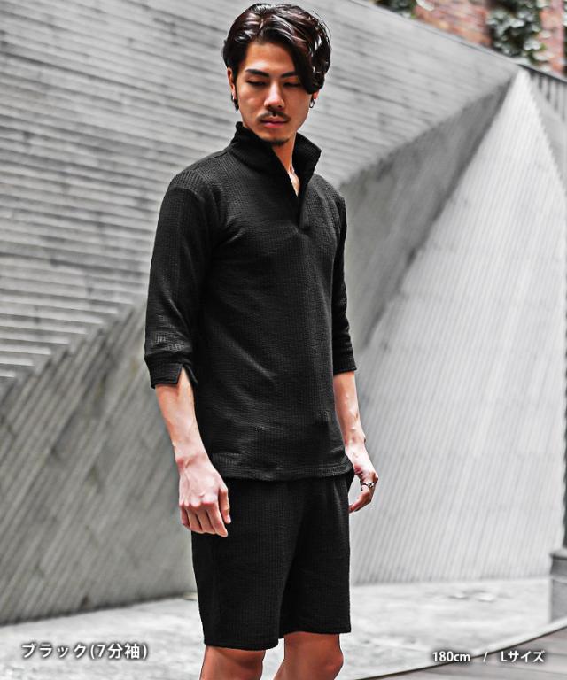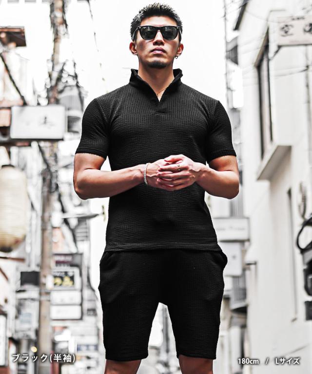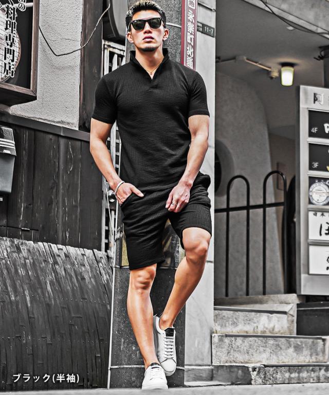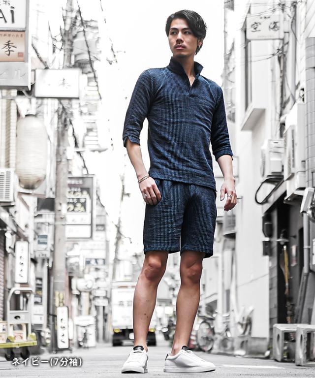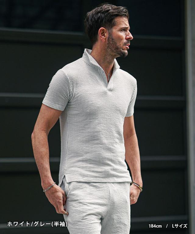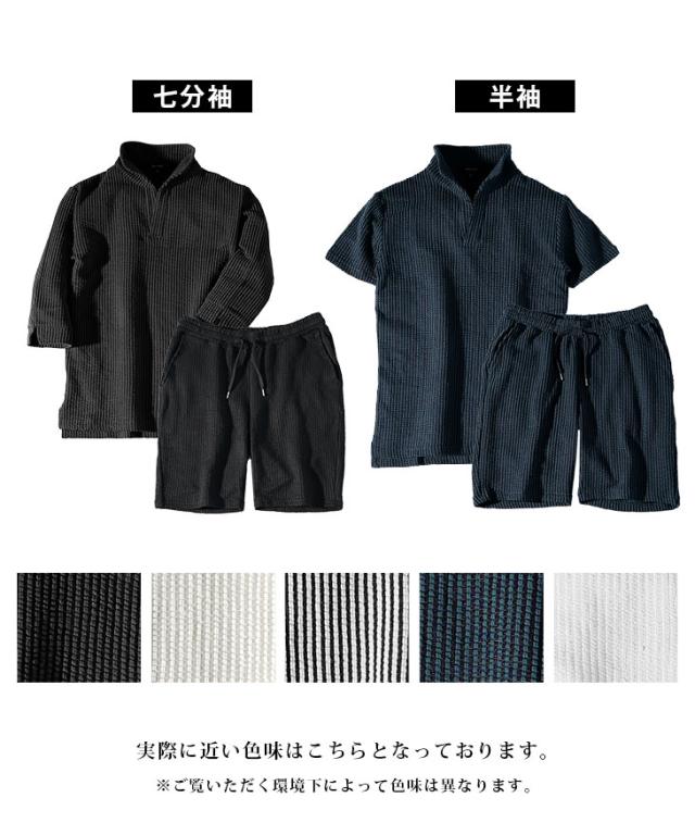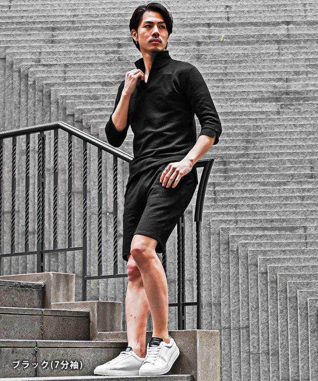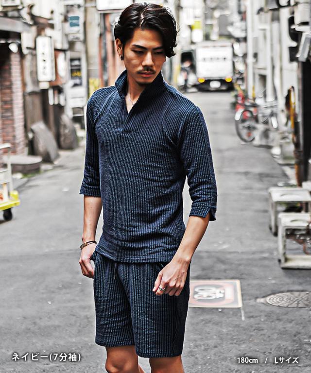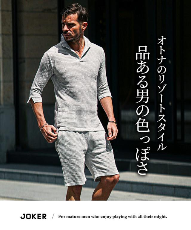 セットアップ メンズ ブランド ポロシャツ メンズ ハーフパンツ メンズ 短パン メンズ 半ズボン 7分袖 七分袖 ショートパンツ 半袖ポロシャツ イタリアンカラー ストライプ 2点セット 春 春服 春物 メンズファッション ちょいワル ちょい悪 お兄系 オラオラ系