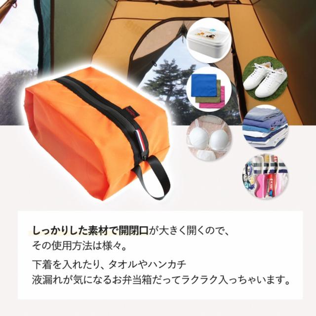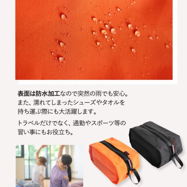 | 商品の説明 | 防水素材仕様だから安心。 アウトドアや旅行、スポーツだけじゃなく ジムやお風呂にも大活躍! 他の荷物にシューズが直接触れないから、汚れてはいけない衣類とも分けての収納が出来るのでおすすめです。 使い勝手や安全性を考えているので、持ちやすく開閉しやすいこだわりのポーチ。 お好みのカラーが見つかる6色展開なので 赤はシューズを入れてブラックには下着類、オレンジには化粧水などのコスメ類を収納することもできます。 荷物が多くかさばりがちな旅行バッグの中身も、これでさっときれいにまとめられます。 折り畳めてコンパクトサイズな多機能シューズポーチ、ぜひお試しください。 サッカーや野球の練習に夢中なお子様のスパイク入れとしてもとてもオススメです! ※完全防水ではありません。 |