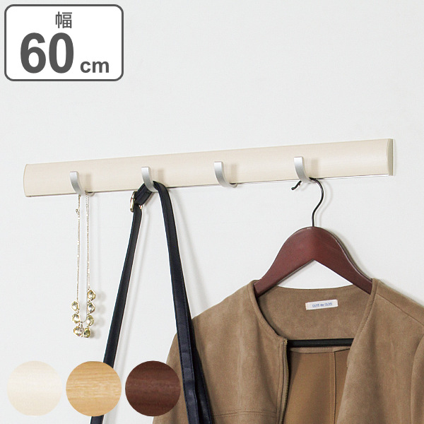 フック 壁面 幅60cm 4連 スライダーフック 壁面収納 ( 壁付け スライドフック ウォールフック 収納 ハンガー ウォールハンガー 木目調 おしゃれ )