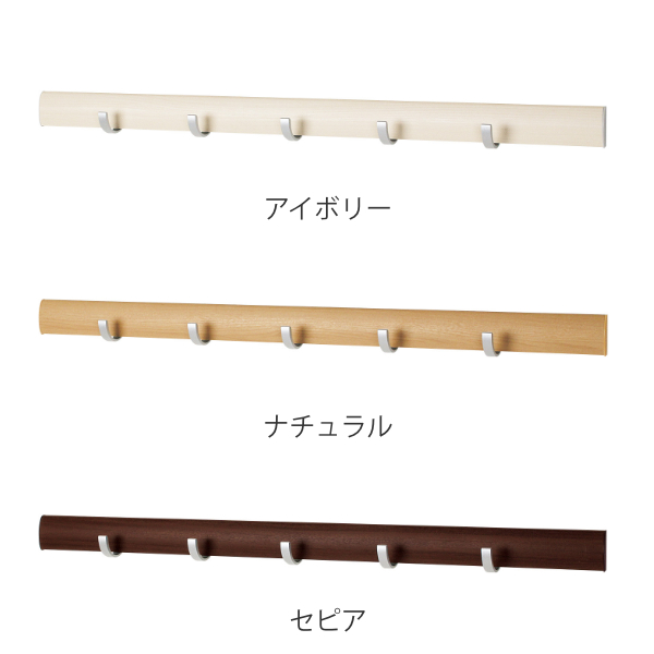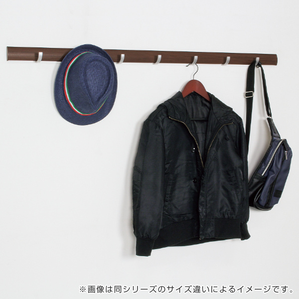 フックはスライド式左右に大きくスライドできるフックが5つ付いています。コートやバッグなど、掛ける物に合わせてフックの間隔を調整できます。