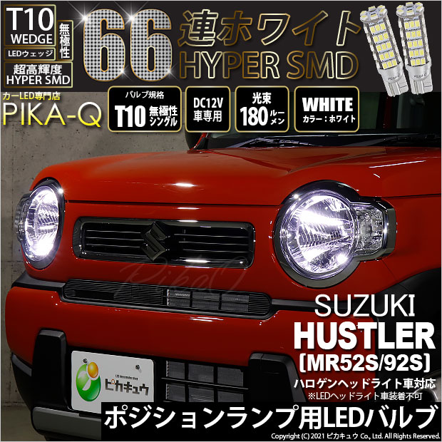 スズキ ハスラー (MR52S/MR92S) ハロゲンヘッドライト車対応 ポジションランプ LED T10 HYPER SMD 66連 ウェッジシングル ホワイト 無極性 2個入 3-A-8