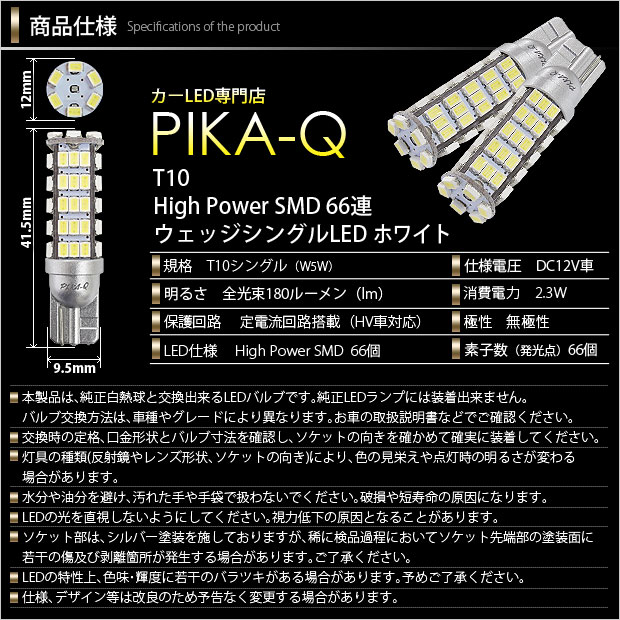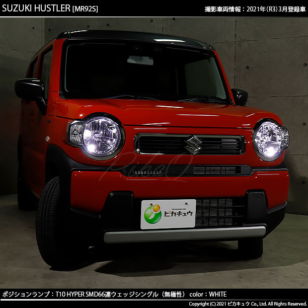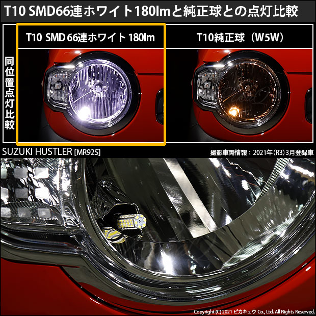 ピカキュウ,LEDバルブ専門店,SMD,T10ウェッジ,66連LEDウェッジシングル球,ホワイト,ポジションランプ,車幅灯,スズキ,ハスラー,SUZUKI,HUSTLER,MR52S,MR92S