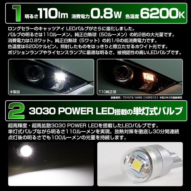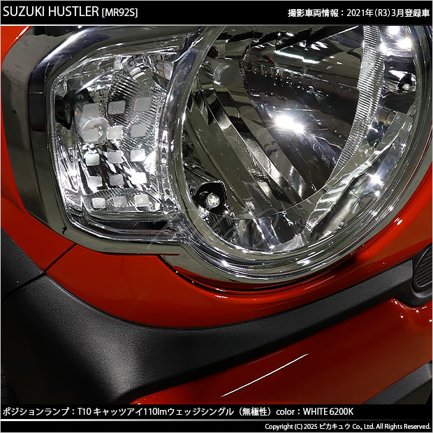 スズキ ハスラー (MR52S/MR92S) ハロゲンヘッドライト車対応 ポジションランプ LED T10 Cat's Eye LED BULB 全光束110ルーメン ホワイト6200K 無極性 2個入 3-B-5