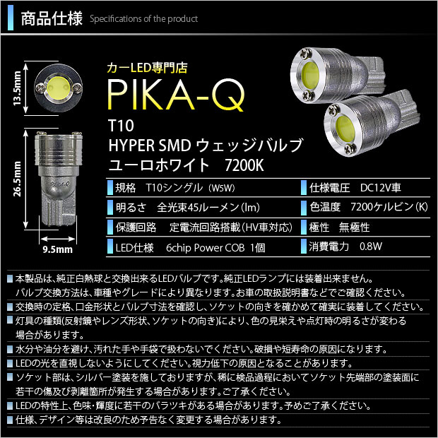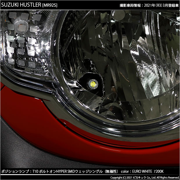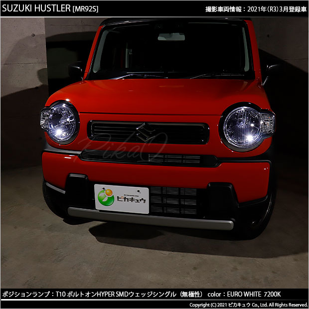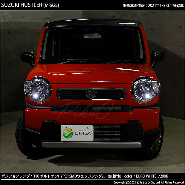 LED,ピカキュウ,LEDバルブ専門店,SMD,T10ウェッジ,ボルトオンHYPER SMDウェッジシングル球,7200ケルビン,ユーロホワイト,ポジションランプ,車幅灯,スズキ,ハスラー,SUZUKI,HUSTLER,MR52S,MR92S,