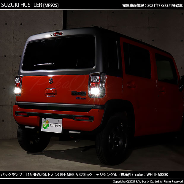 LED,ピカキュウ,LED専門店,LEDバルブ,CREE MHB-A搭載,T16ウェッジ,T16 NEW Bolt On CREE,ボルトオンCREE,320ルーメン,バックランプ,後退灯,スズキ,ハスラー,SUZUKI,HUSTLER,MR52S,MR92S