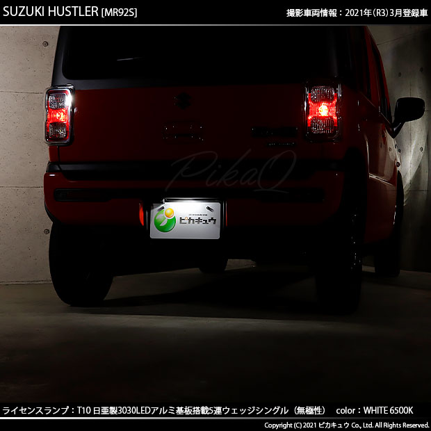 ピカキュウ,LED専門店,LEDバルブ,LED,SMD,T10,W5W,日亜化学工業,日亜,3030,ライセンスランプ,番号灯,爆光,140lm,140ルーメン,スズキ,ハスラー,SUZUKI,HUSTLER,MR52S,MR92S