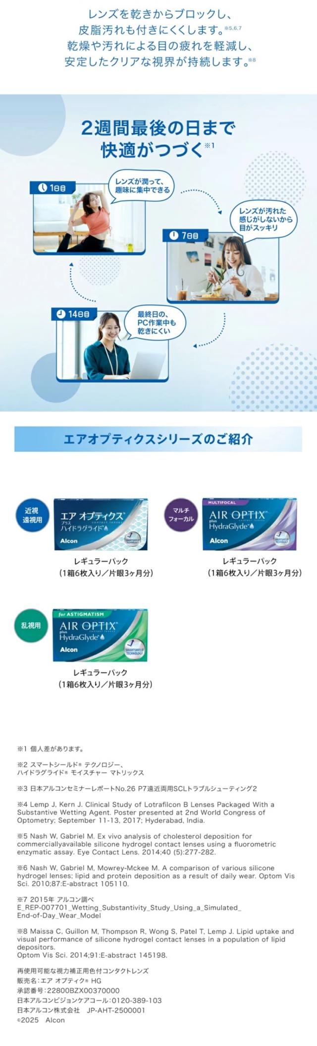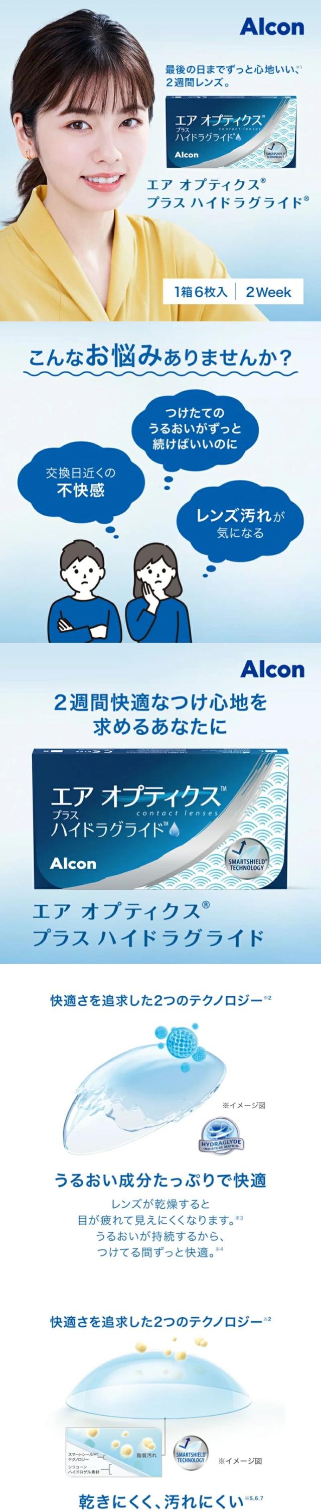 エアオプティクスプラス ハイドラグライド 2箱(1箱6枚入)送料無料 ポスト便 2週間使い捨て コンタクト 2ウィーク アルコン