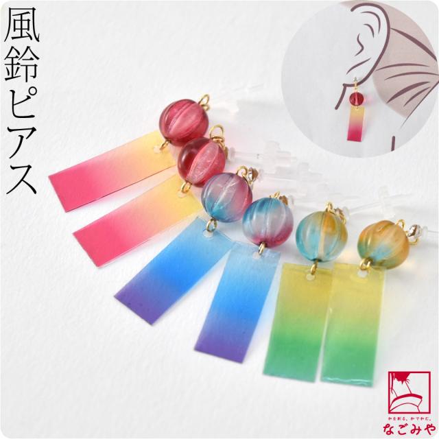 和柄 ピアス チャーム 通年用 日本製 ピアス グラデーション 短冊 樹脂ポスト おしゃれ 大人 レディース 女性10022633