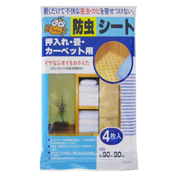 防虫シート 押入れ 畳 カーペット用 4枚 住まいの防虫物語 ( 90×90cm 防虫 加工 押し入れ シート 防虫加工 押入れ用 カーペット 絨毯 じゅうたん たたみ 畳用 マット 敷きマット )