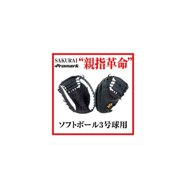 ソフトボール 3号用 サクライ貿易 メンズ レディース キャッチャー・ファースト兼用 ソフトボール用グラブ キャッチャーミット 捕手 一塁 ブラック 黒 送料無料 SAKURAI PCMS-4821W