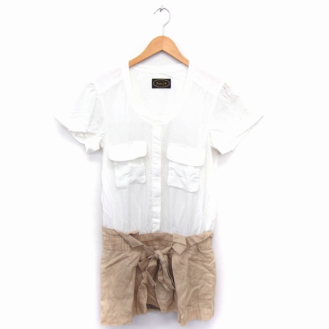 【中古】ブロードゥリー&コー Broderie&Co ナノユニバース ワンピース 切替 シャツ Uネック 半袖 ひざ丈 36 ホワイト