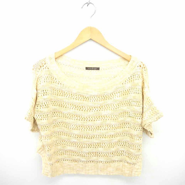 【中古】ミミ&ロジャー サマーニット セーター 透け編み ラメ 薄手 ボートネック 麻 リネン 半袖 1 ベージュ 薄茶