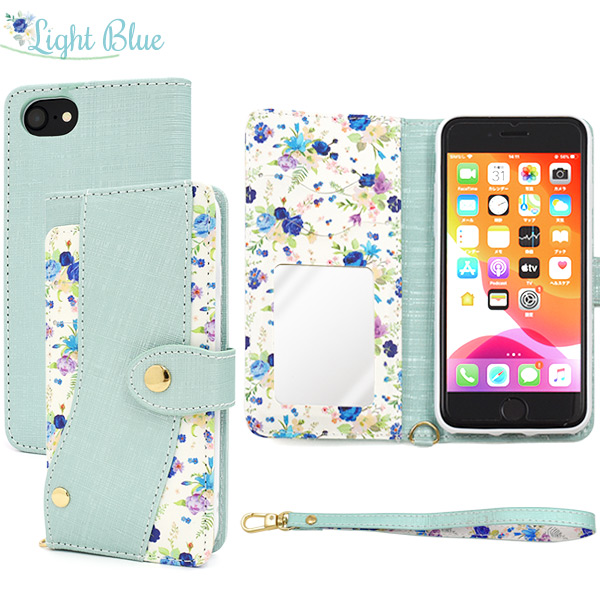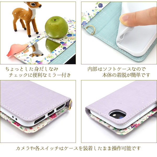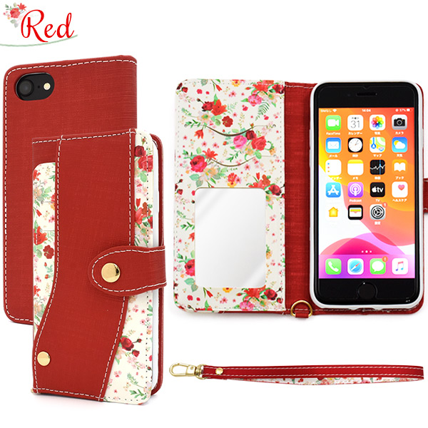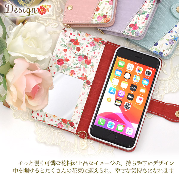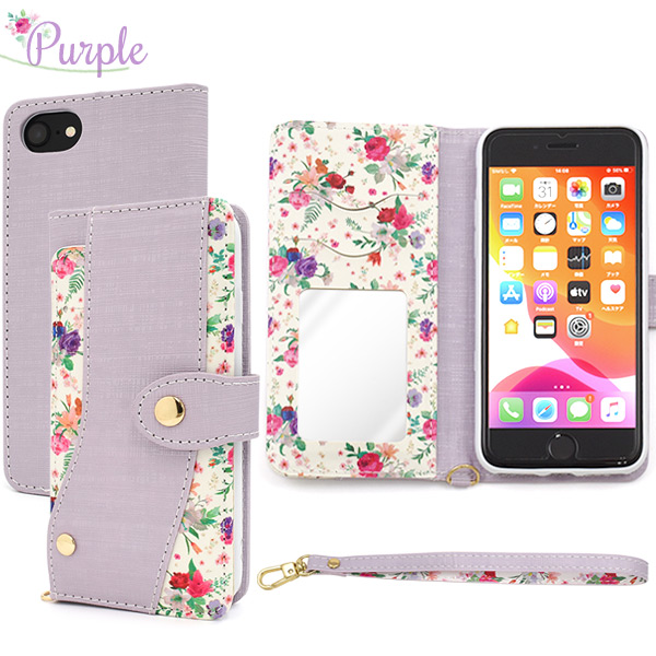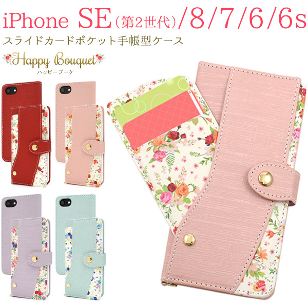 スマホケース iPhone8 iPhone7 iPhoneSE(第二世代)iPhone6 iPhone6S用 手帳型 花柄 スライドカードポケット付き 携帯ケース 磁石なし 花模様 上品 お花 オシャレ 可愛い 華やか フラワー スマホカバー 装着簡単 スマートフォンケース SoftBank au docomo