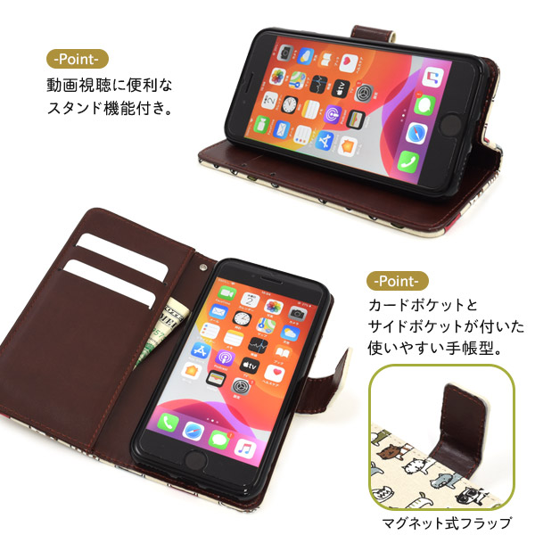 スマホケース iPhone8 iPhone7 iPhoneSE(第二世代)iPhone6 iPhone6S用 手帳型 可愛い 猫柄 スマホケース にゃんこ 猫 猫模様 装着簡単 携帯ケース オシャレ カジュアル お洒落 ねこ 横開き 大人可愛い 大人女子 スマートフォンケース SoftBank au docomo