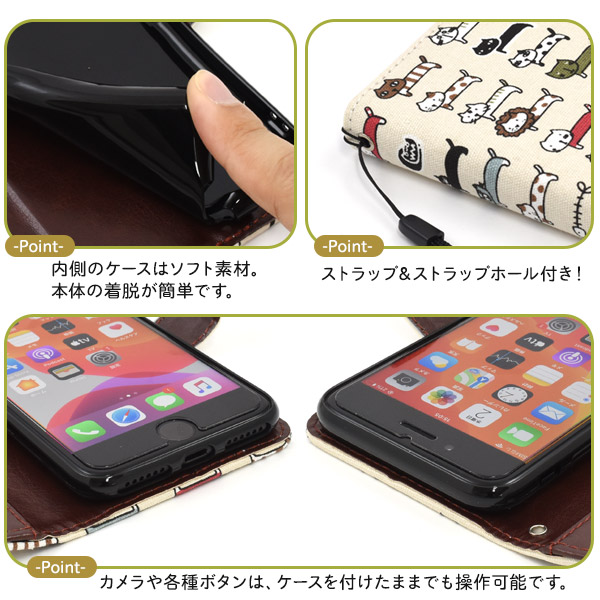 ※本製品はマグネットを使用しておりますのでクレジットカードなどの磁気カードの収納は避け、カードの注意事項をよくご確認の上ご使用ください。 読み取り等ができなくなる恐れがあります。※本製品に収納された、カードのデータ等が喪失された場合におきましても、 当社では一切保証致しかねます。※長時間接触していたり、強い力で擦れるとスマートフォンに色移りする場合がございます。 ※本製品は強い衝撃からスマートフォンを保護することは出来ません。※スマートフォンは付属しません。※ライセンス商品ではありません。※カードは付属しません。※広角モードで撮影すると、ケースが映り込む場合があります。