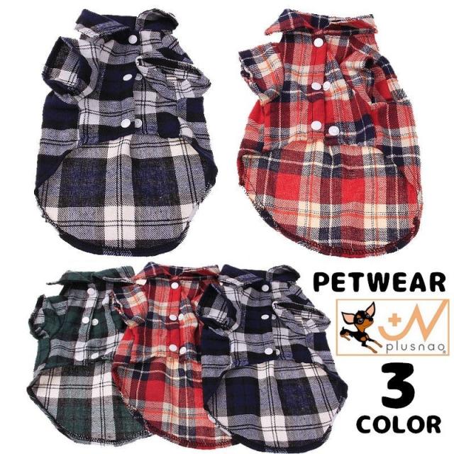 ペットウェア ドッグウェア 犬服 猫服 シャツ 襟付き 袖あり 前開き スナップボタン ペット用品 犬の服 猫の服 チェック柄