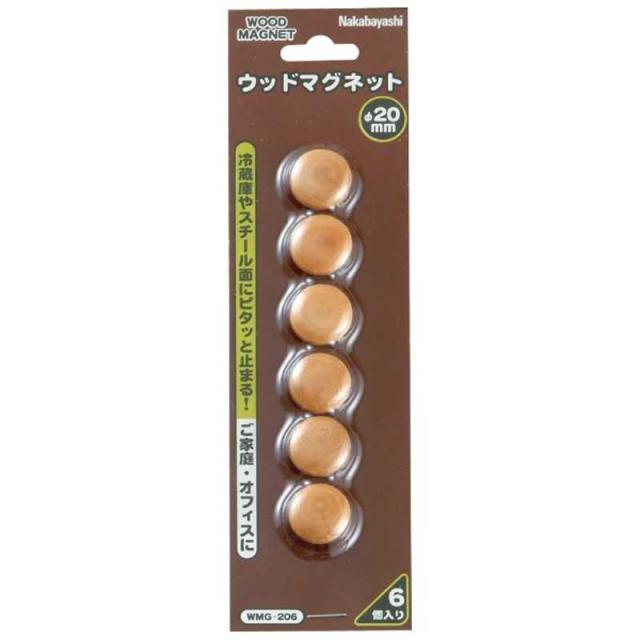 ナカバヤシ ウッドマグネット ナチュラル木目 直径20mm WMG-206NM